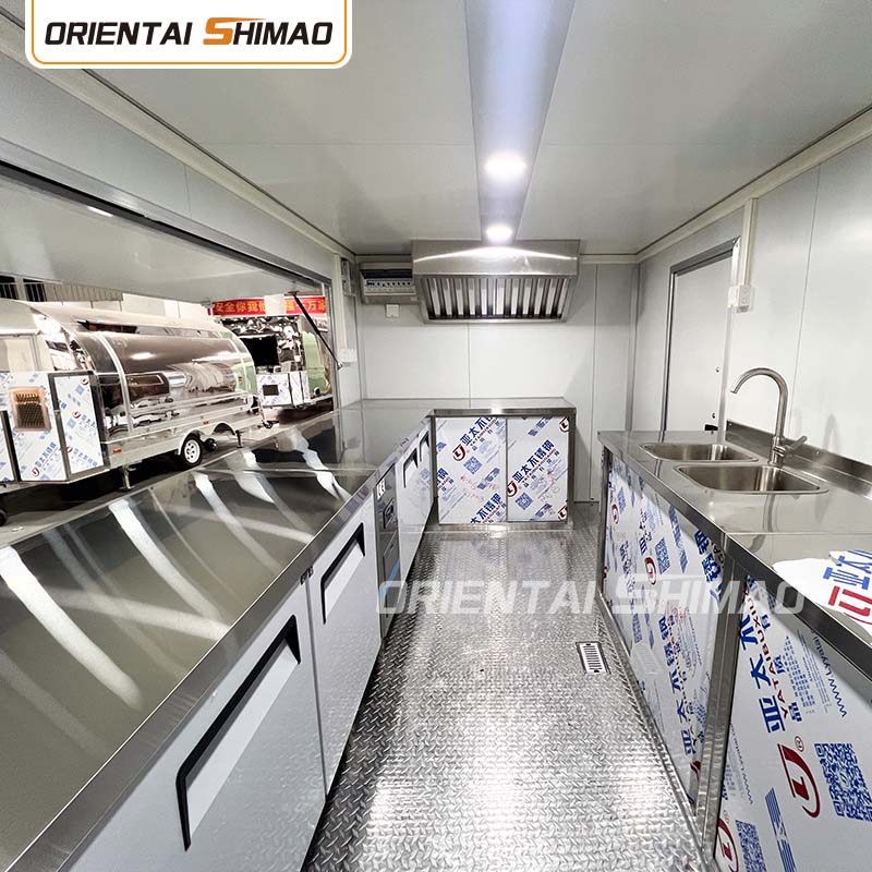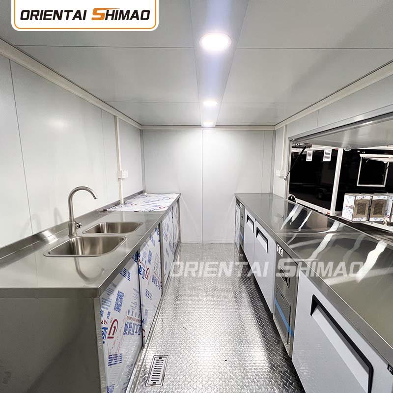 Espuma de poliéster-amônia: A camada intermediária do food truck é preenchida com espuma de poliéster-amônia. Este material possui excelentes propriedades de isolamento térmico e acústico, que podem manter efetivamente a temperatura interna, reduzir o consumo de energia e proporcionar um ambiente de trabalho mais silencioso.