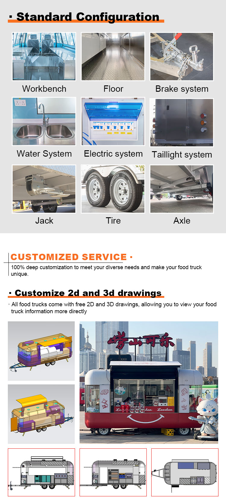 Para o material principal, escolhemos o aço inoxidável 304 de alta qualidade, que é conhecido por sua excelente resistência à corrosão e excelente durabilidade, e pode manter um desempenho estável em uma variedade de condições ambientais, garantindo que nossos produtos de reboques para catering possam manter sua excelente qualidade e funcionalidade mesmo no longo prazo e enfrentar uma variedade de desafios. Excelente resistência do aço inoxidável 304 à corrosão, fazendo com que o Caminhão não seja facilmente afetado pela oxidação ou ferrugem, o que prolonga muito sua vida útil. A excelente resistência à corrosão do aço inoxidável 304 torna o caminhão menos suscetível à oxidação ou ferrugem, prolongando bastante sua vida útil.