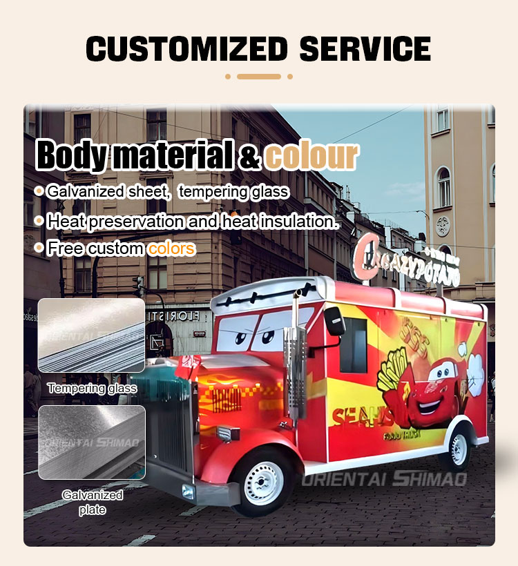 Caminhão de alimentos elétricos de venda a quente Suporte a várias soluções personalizadas, personalização de tamanho, personalização de logotipo, personalização interna, etc.