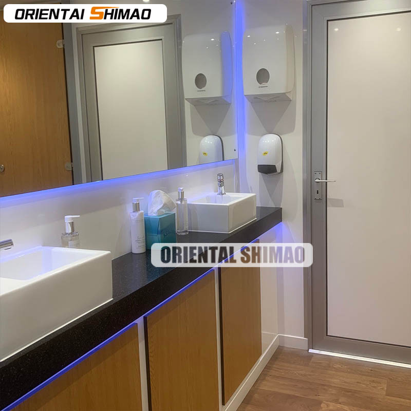 · Materiais interiores: Os revestimentos antimicrobianos e os materiais impermeáveis são usados para a decoração de interiores para garantir um ambiente higiênico e fácil de limpar. O piso é feito de material polimerizado sem deslizamento para evitar deslizamentos e aumentar a segurança. Todas as superfícies de toque, como maçanetas e torneiras, são feitas de aço inoxidável antibacteriano para impedir a propagação de bactérias.