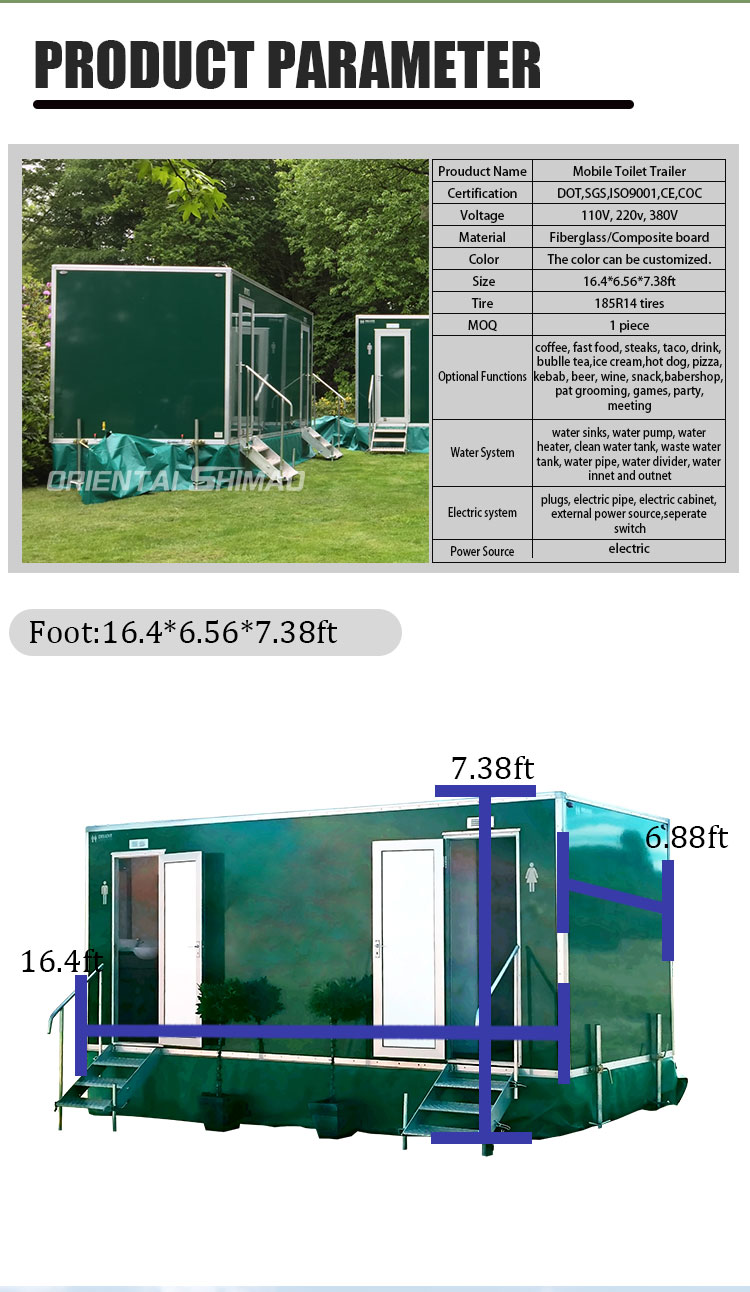 · Desempenho móvel poderoso: este banheiro móvel executivo está equipado com pneus de alto desempenho e um sistema de suspensão reforçado para garantir que ele possa lidar facilmente com todos os tipos de terrenos e pode ser movido e implantado de forma de forma de forma, seja em um canteiro de construção lamacento ou em um local de esgoto.