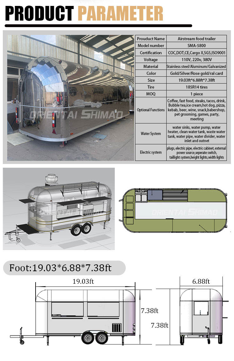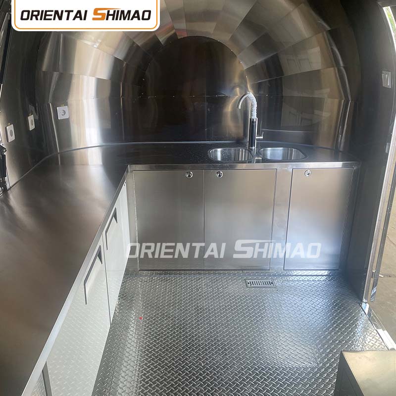 Aço inoxidável dourado: o exterior do food truck é feito de aço inoxidável dourado de alta qualidade. Este material não só possui excelente resistência à corrosão e abrasão, mas também o aspecto dourado aumenta a beleza visual e a sensação de alta qualidade, para que o food truck possa se destacar em diversos ambientes.