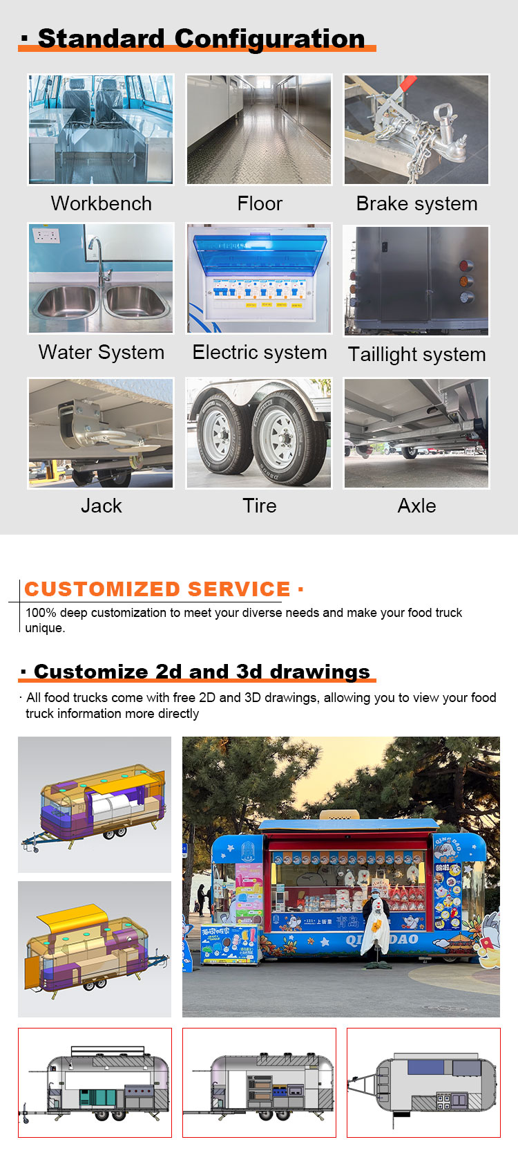 Para o material principal, escolhemos o aço inoxidável 304 de alta qualidade, que é conhecido por sua excelente resistência à corrosão e excelente durabilidade, e pode manter um desempenho estável em uma variedade de condições ambientais, garantindo que nossos produtos de reboques para catering possam manter sua excelente qualidade e funcionalidade mesmo no longo prazo e enfrentar uma variedade de desafios. Excelente resistência do aço inoxidável 304 à corrosão, fazendo com que o Caminhão não seja facilmente afetado pela oxidação ou ferrugem, o que prolonga muito sua vida útil. A excelente resistência à corrosão do aço inoxidável 304 torna o caminhão menos suscetível à oxidação ou ferrugem, prolongando bastante sua vida útil.