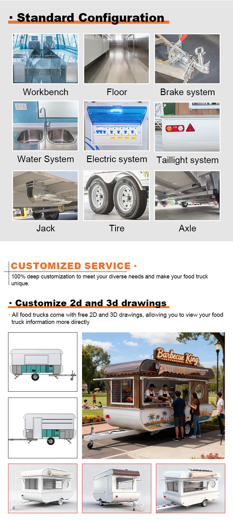 Reboque de alimentos Caminhão de alimentos dirigível Cozinha móvel Catering Reboque de comida de rua Conceito Caminhão de alimentos introdução