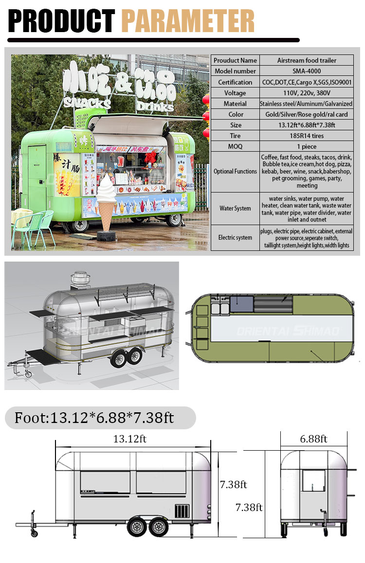 Para o material principal, escolhemos o aço inoxidável 304 de alta qualidade, que é conhecido por sua excelente resistência à corrosão e excelente durabilidade, podendo manter um desempenho estável em uma variedade de condições ambientais, garantindo que nossos produtos Food Trailer With Full Kitchen possam manter sua excelente qualidade e funcionalidade mesmo no longo prazo e enfrentar uma variedade de desafios. Excelente resistência do aço inoxidável 304 à corrosão, fazendo com que o Caminhão não seja facilmente afetado pela oxidação ou ferrugem, o que prolonga muito sua vida útil. A excelente resistência à corrosão do aço inoxidável 304 torna o caminhão menos suscetível à oxidação ou ferrugem, prolongando bastante sua vida útil.
