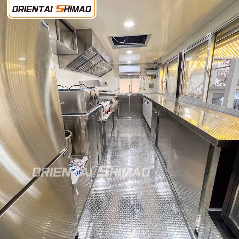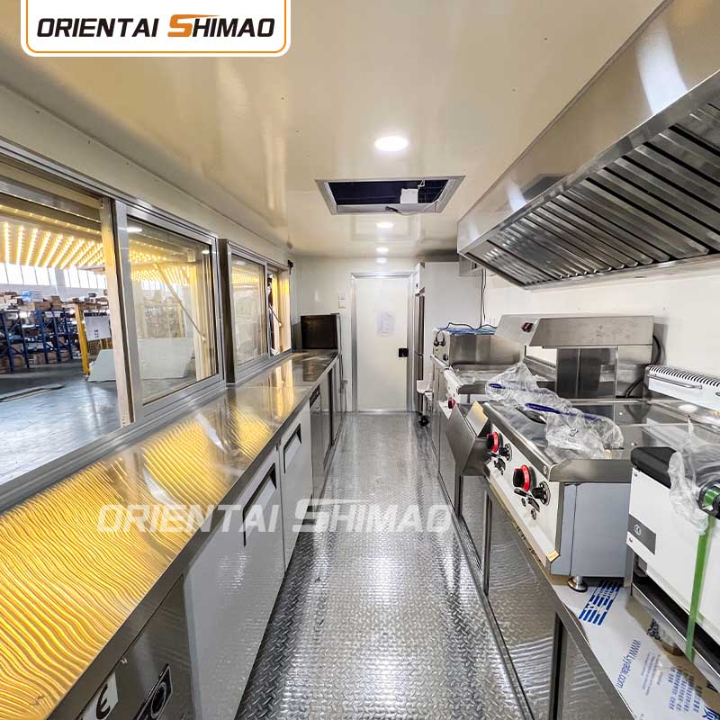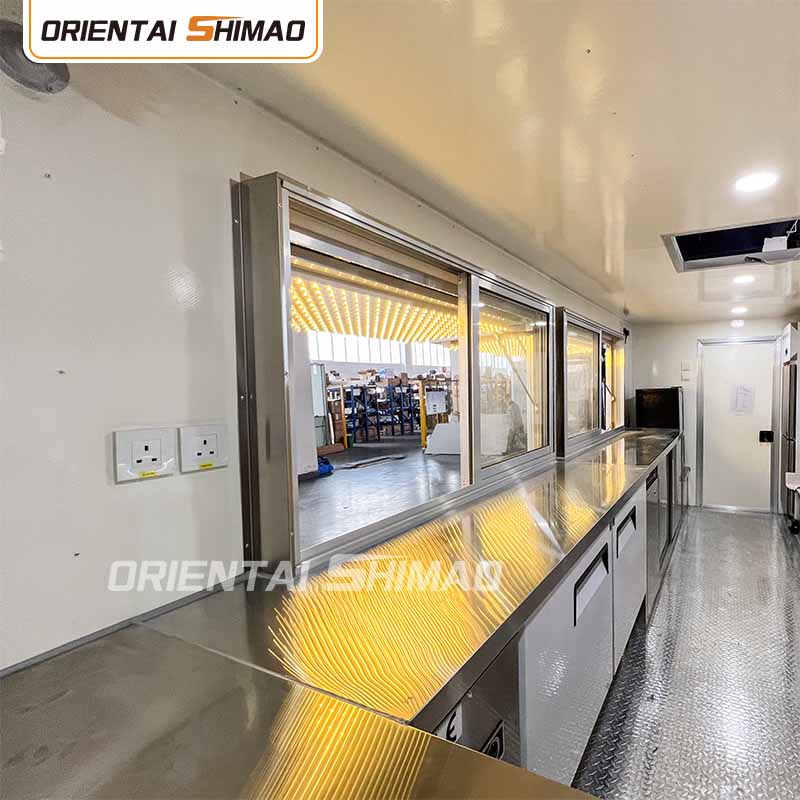 Espuma de poliéster-amônia: A camada intermediária do food truck é preenchida com espuma de poliéster-amônia. Este material possui excelentes propriedades de isolamento térmico e acústico, que podem manter efetivamente a temperatura interna, reduzir o consumo de energia e proporcionar um ambiente de trabalho mais silencioso.