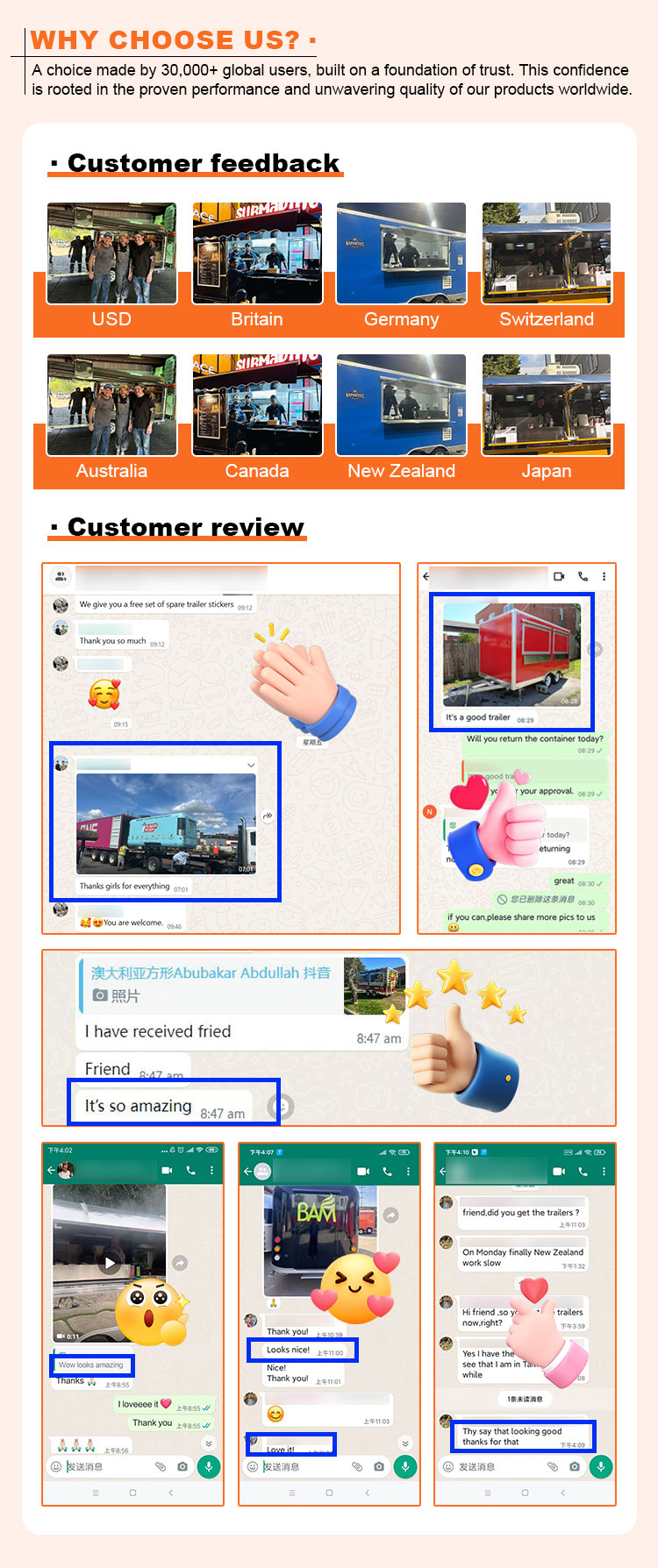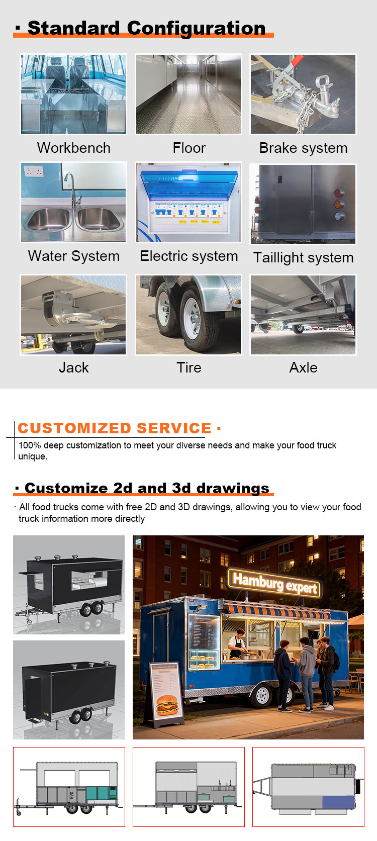 Material e processo: Escolha materiais de alta qualidade e processo de fabricação avançado para garantir que a aparência do food truck seja bonita e durável.