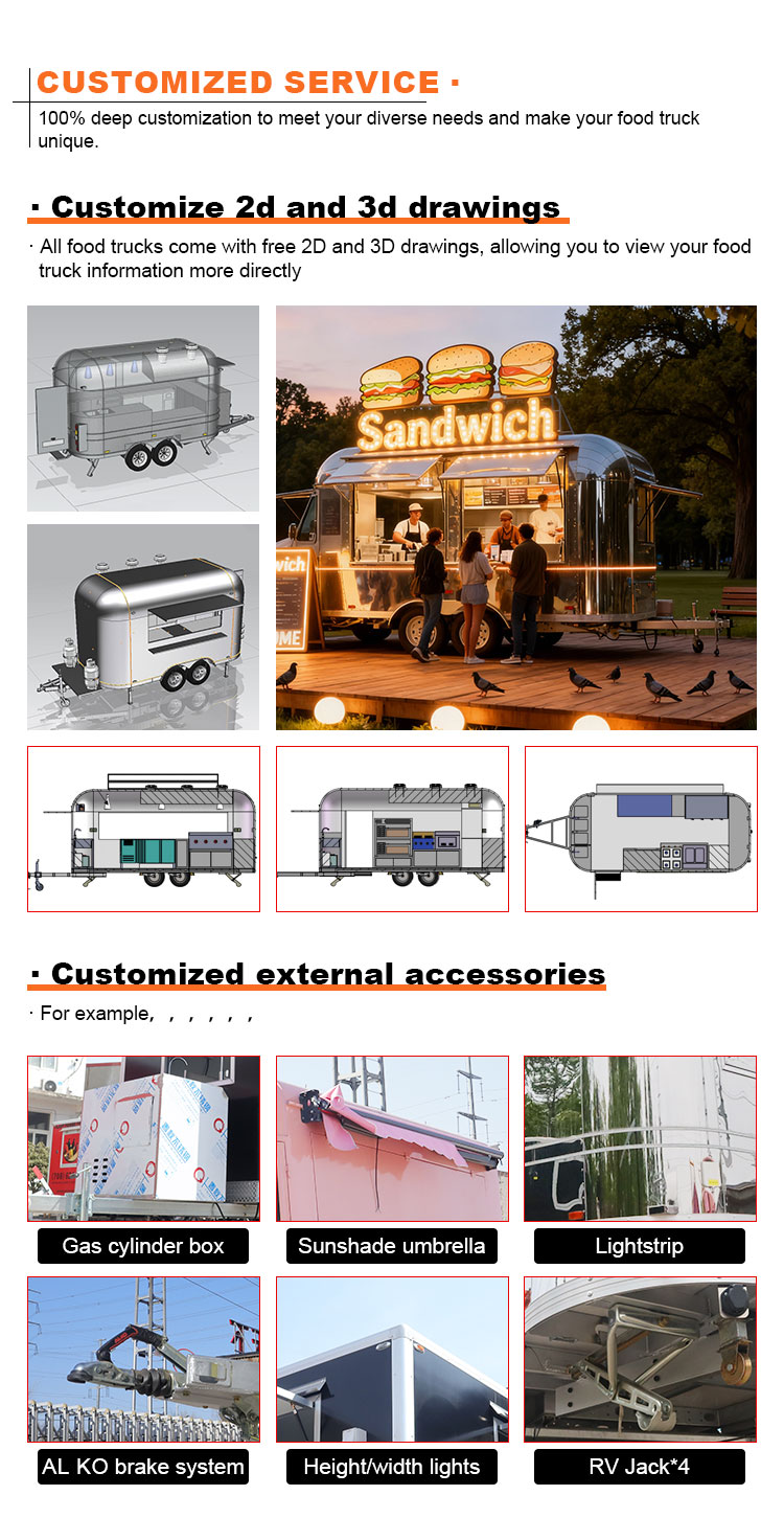 Reboque de alimentos Caminhão de alimentos dirigível Cozinha móvel Catering Reboque de comida de rua Conceito Caminhão de alimentos