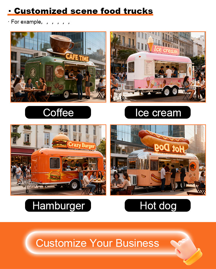 Carrinho de comida móvel, cozinha comercial, equipamento de restaurante, trailer de comida elétrico para uso na rua, caminhão de comida
