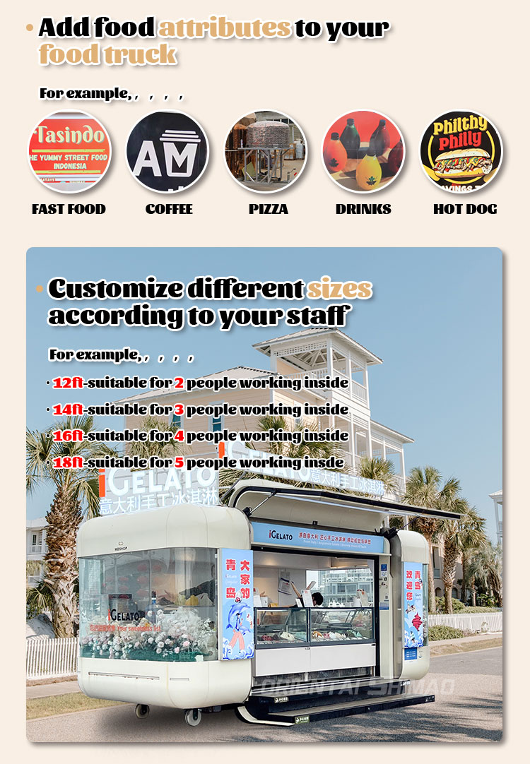 Material e processo: Escolha materiais de alta qualidade e processo de fabricação avançado para garantir que a aparência do food truck seja bonita e durável.
