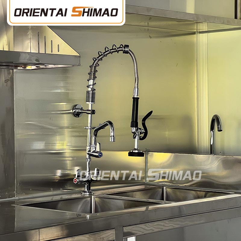 Aço inoxidável: a decoração interior e os equipamentos são em sua maioria feitos de aço inoxidável, como mesas de operação, armários de armazenamento, pias e assim por diante. A resistência à corrosão e a facilidade de limpeza do aço inoxidável tornam-no a escolha ideal para equipamentos de catering, que podem prevenir eficazmente o crescimento de bactérias e garantir a segurança alimentar.