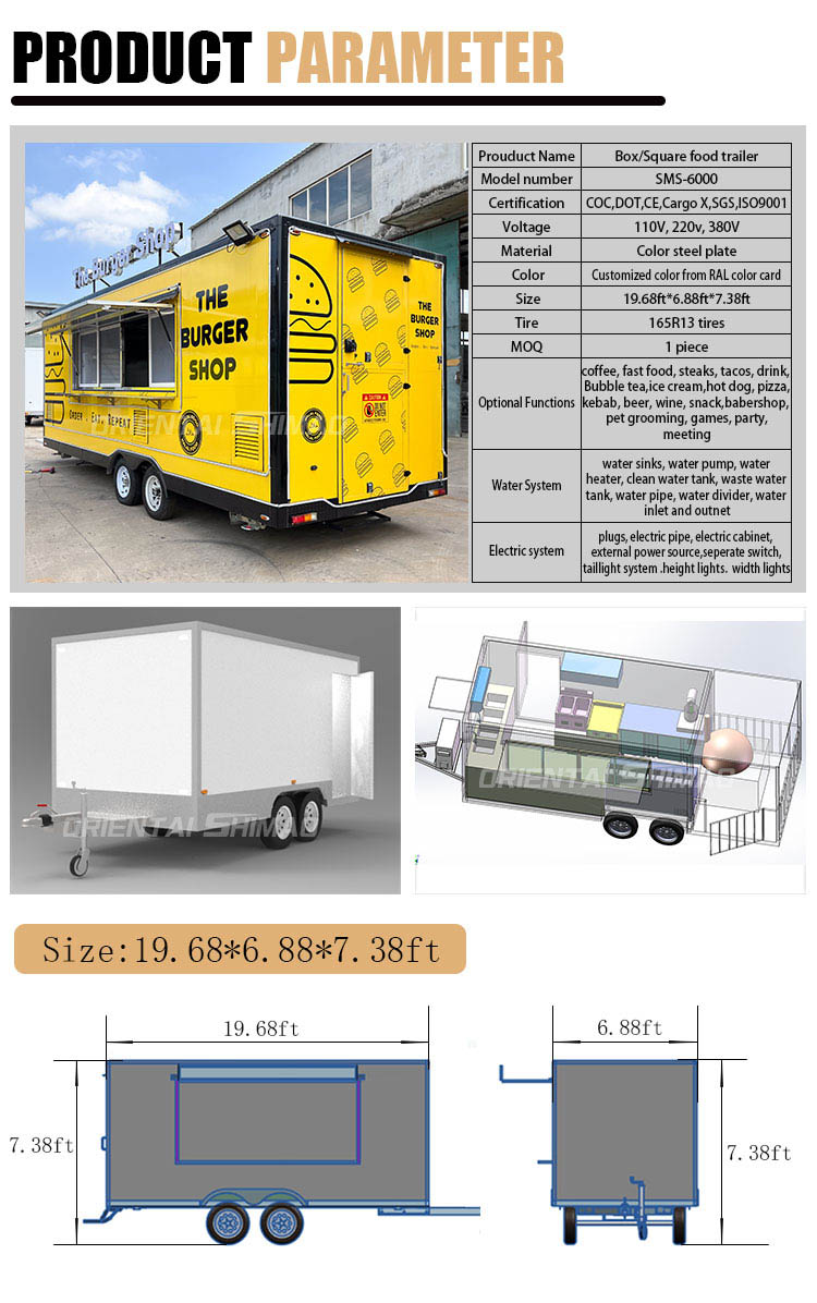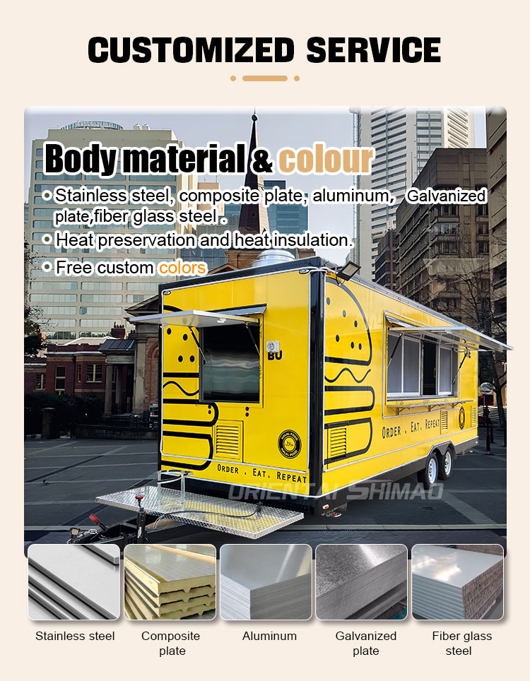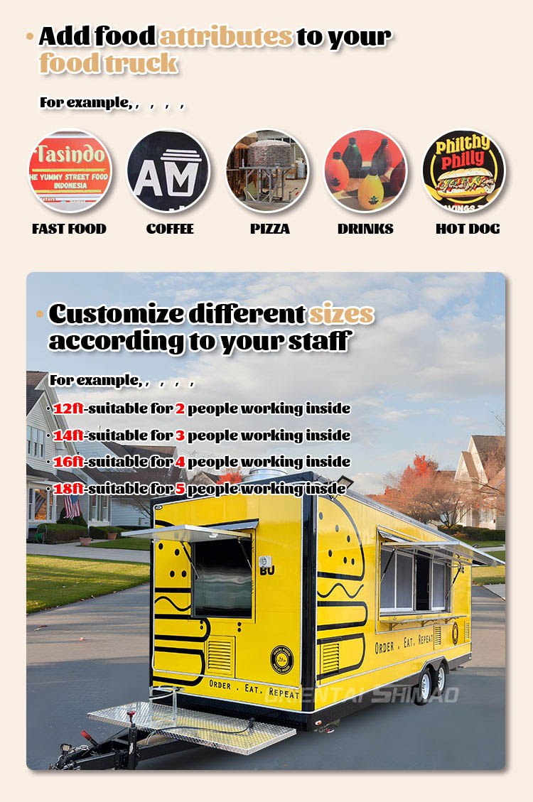 Você só precisa fornecer as informações do produto que você precisa, nosso gerente de vendas sênior lhe dará os produtos recomendados e, desde o início do pedido, nossa equipe de design profissional pode fornecer o design que pertence ao seu rascunho e, em seguida, começar a fabricar a produção do seu food truck, você pode dar o máximo à sua imaginação para personalizar o produto, de dentro para fora, você também pode comprar os equipamentos necessários do nosso lado do seu negócio, poupando-lhe o trabalho de comprar e selecionar, a produção do todo nós lhe daremos o estabelecimento de sua equipe de serviço, qualquer problema conosco a qualquer momento. Montaremos uma equipe de atendimento para você, e você poderá se comunicar conosco a qualquer momento para qualquer dúvida, após a produção, enviaremos um vídeo para sua inspeção, ou você pode vir até a fábrica para inspecionar a mercadoria, convidamos você a vir!