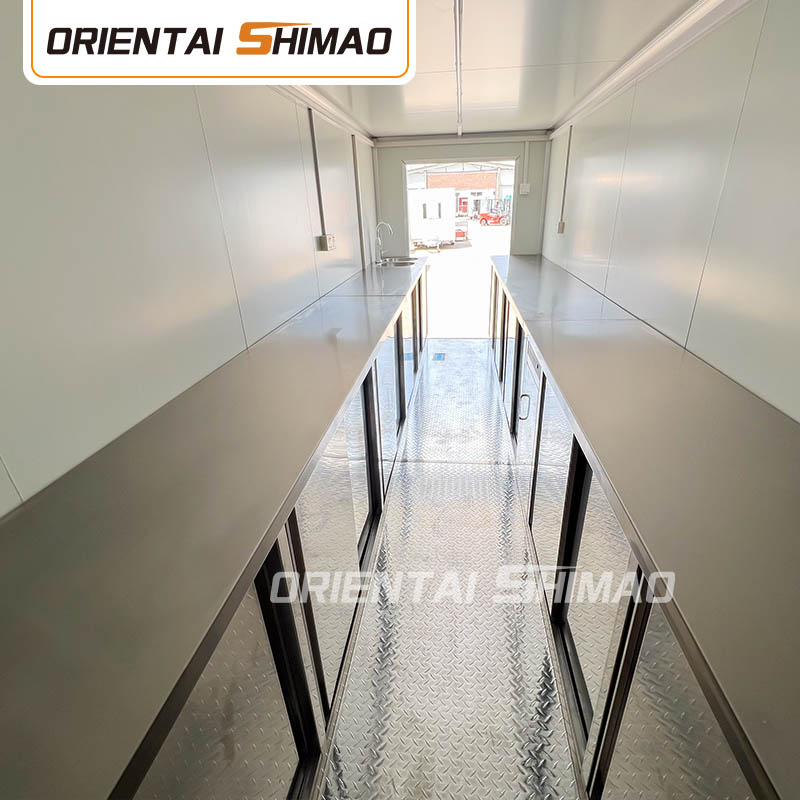 Quanto ao desenho do piso, é ainda mais engenhoso, adotando uma estrutura de três camadas para conseguir múltiplos efeitos protetores. A camada inferior é feita de plástico reforçado com fibra de vidro (FRP), que possui excelente desempenho à prova d'água e à prova de umidade, bloqueando efetivamente a entrada de umidade do solo no interior do food truck; a camada intermediária é feita de tábuas de madeira resistentes a insetos importadas da Austrália, que são especialmente tratadas com função natural de resistência a insetos, construindo uma sólida linha de defesa para a segurança alimentar; e a camada superior é pavimentada com placas de alumínio duráveis, que não só são antiderrapantes e resistentes ao desgaste, mas também melhoram a estética geral e a durabilidade, garantindo que os clientes possam desfrutar da sua comida da melhor maneira possível. A camada superior é revestida com uma placa de alumínio forte e durável, que não só é antiderrapante e resistente ao desgaste, mas também melhora a estética geral e a durabilidade, garantindo a segurança e o conforto dos clientes na hora de saborear a comida.