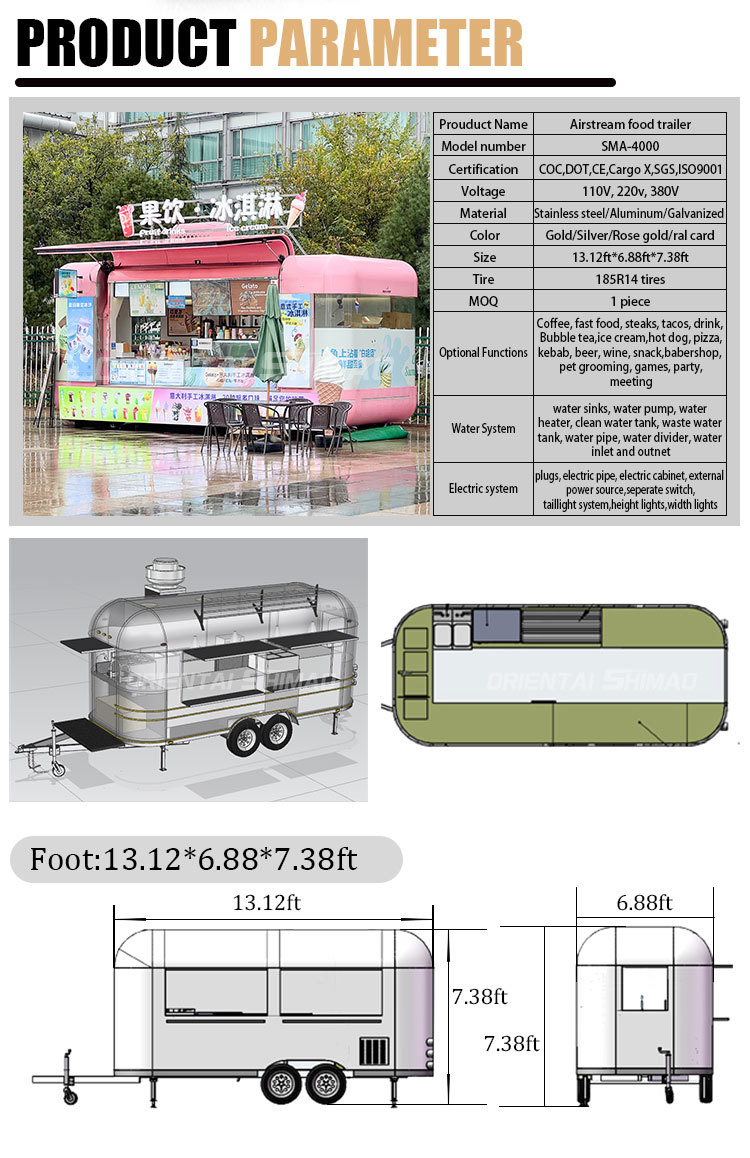 Para o material principal, escolhemos o aço inoxidável 304 de alta qualidade, que é conhecido por sua excelente resistência à corrosão e excelente durabilidade, podendo manter um desempenho estável em uma variedade de condições ambientais, garantindo que nossos produtos Pizza Trailer possam manter sua excelente qualidade e funcionalidade mesmo no longo prazo e enfrentar uma variedade de desafios. Excelente resistência do aço inoxidável 304 à corrosão, fazendo com que o Caminhão não seja facilmente afetado pela oxidação ou ferrugem, o que prolonga muito sua vida útil. A excelente resistência à corrosão do aço inoxidável 304 torna o caminhão menos suscetível à oxidação ou ferrugem, prolongando bastante sua vida útil.