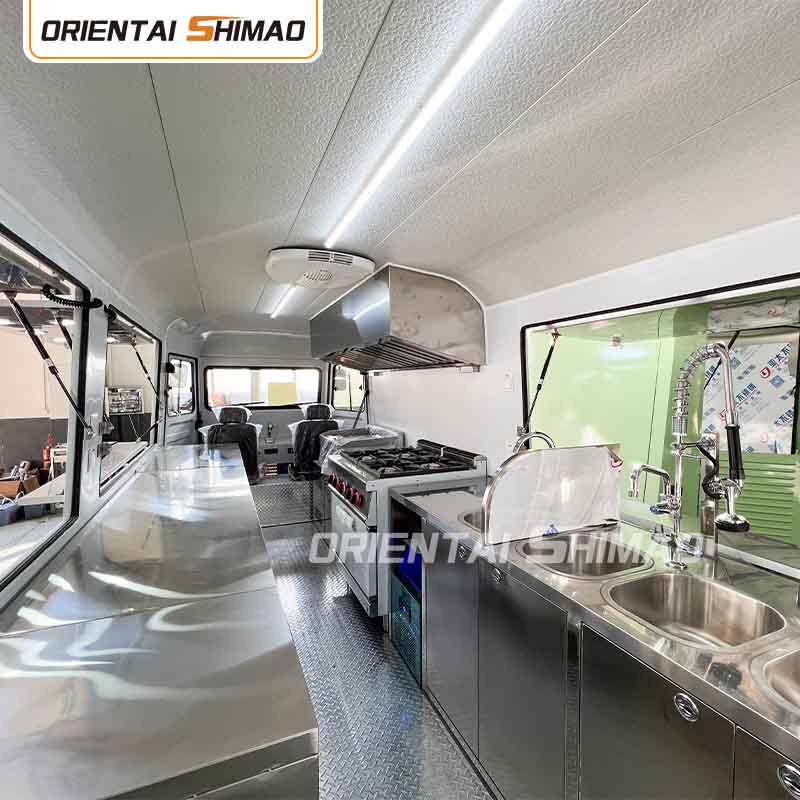 Otimização do espaço: aproveite ao máximo o espaço interno do food truck e melhore a utilização do espaço através de design de vários andares, móveis dobráveis ou deslizantes, etc.