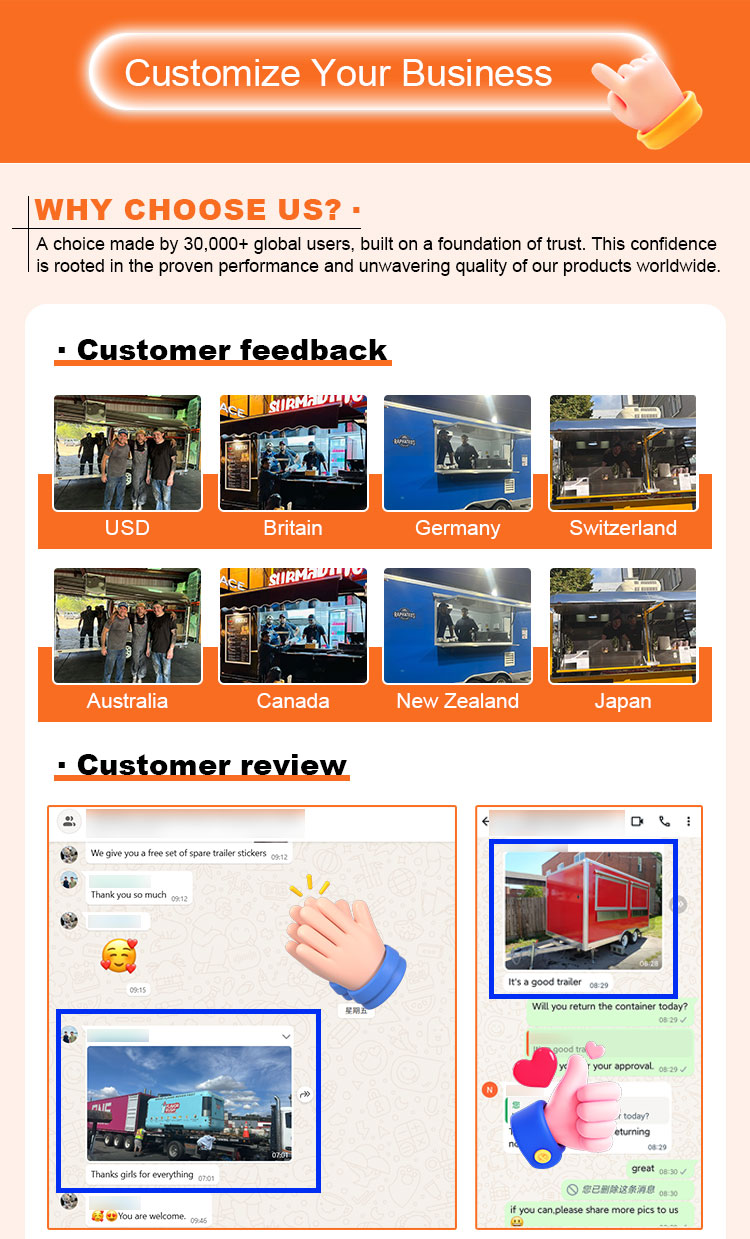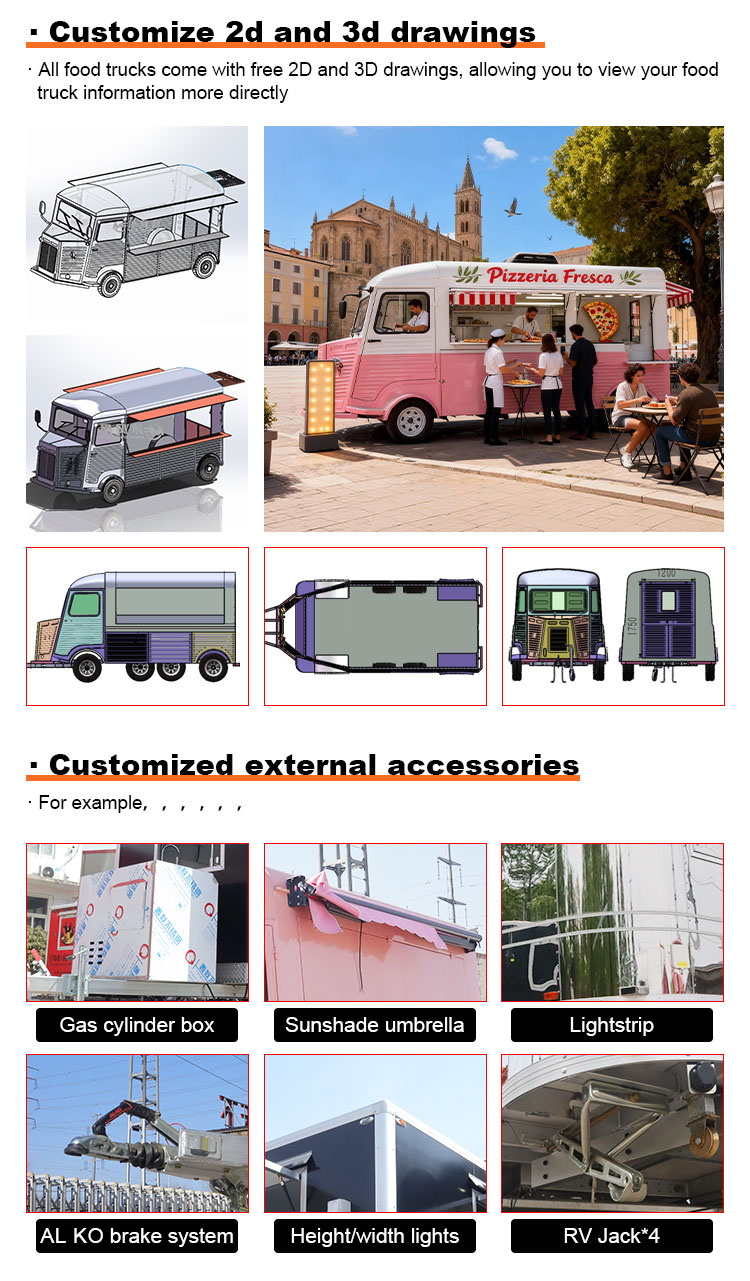 Material e processo: Escolha materiais de alta qualidade e processo de fabricação avançado para garantir que a aparência do food truck seja bonita e durável.